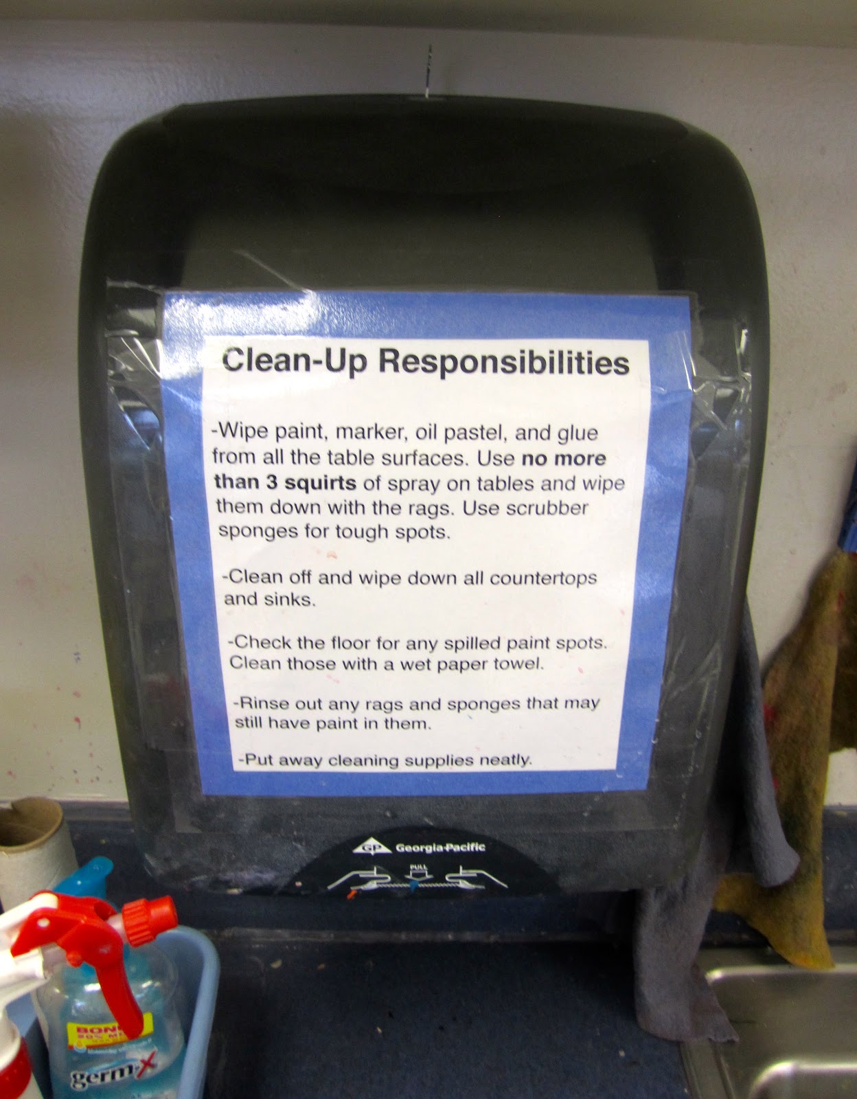 I have cleanup responsibilities posted in case I ever need to review the expectations. Even just having the list there seems to be a reminder that this is a serious part of behaving like an artist.